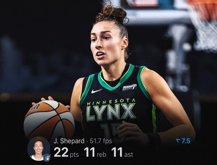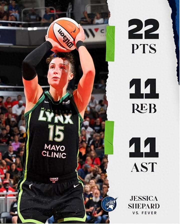 谢泼德成为明尼苏达山猫取胜的关键功臣,她此役打满40分钟,高效11中10,但罚球6中2,贡献22分11篮板(5前场)11助攻0失误0犯规的全能数据。